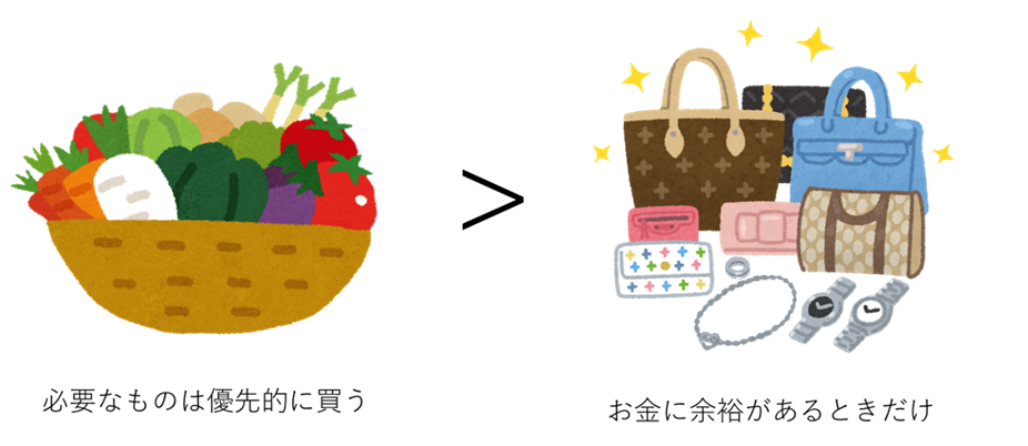 優先順位をつけて買い物をするのはとても大事です。たまにご褒美も許したほうが節約を長く続けられます。ですが、ご褒美をどの程度許してもいいのかという疑問が次に浮かぶでしょう。ご褒美ばかりではやっぱりお金はたまりません。おすすめは、収入の1/4をまずは強制的に貯金してしまうことです。頑張れる人は1/2ぐらいを目指しても良いでしょう。(実際、僕は給料の半分を貯金していました。)1/4を貯金して残りの3/4つまり75%は使えるお金です。この中から家賃、食費、水道光熱費、スマホ代、保険代などの必要な生活費を引き算して確保しておきます。そして、その残りが残りをご褒美代となります。